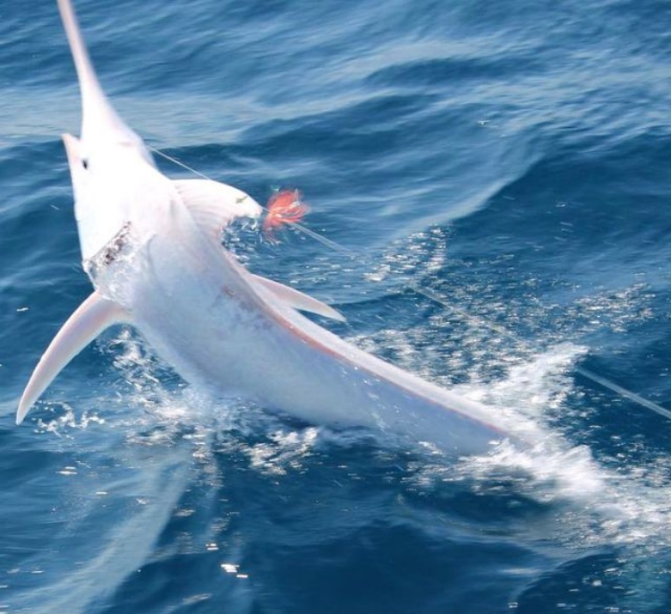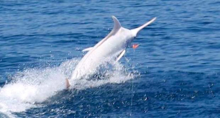 Albino Bl� Marlin fanget fra b�den �Spanish Fly� som chartres fra Maverick Sportsfishing der sejler fra Los Suenos p� Costa Rica p� Stillehavs siden.